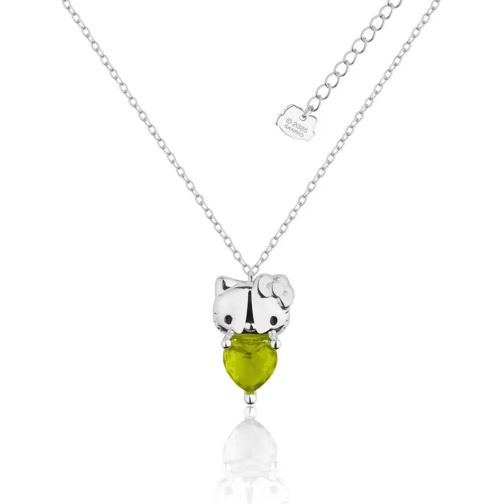 Celebrate your August birthday with this playful Hello Kitty necklace adorned with sparkling heart shape crystal that capture the magic of your special month. Perfect for adding a touch of Sanrio kawaii charm to your life, or the most perfect gift.