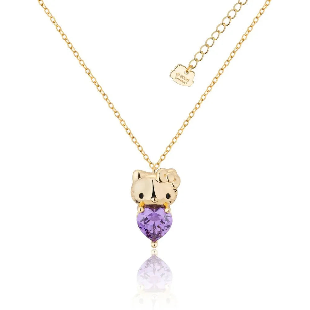 Celebrate your February birthday with this playful Hello Kitty necklace adorned with sparkling heart shape crystal that capture the magic of your special month. Perfect for adding a touch of Sanrio kawaii charm to your life, or the most perfect gift.