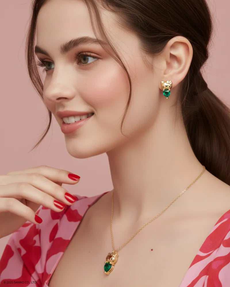 Celebrate your May birthday with this playful Hello Kitty necklace adorned with sparkling heart shape crystal that capture the magic of your special month. Perfect for adding a touch of Sanrio kawaii charm to your life, or the most perfect gift.