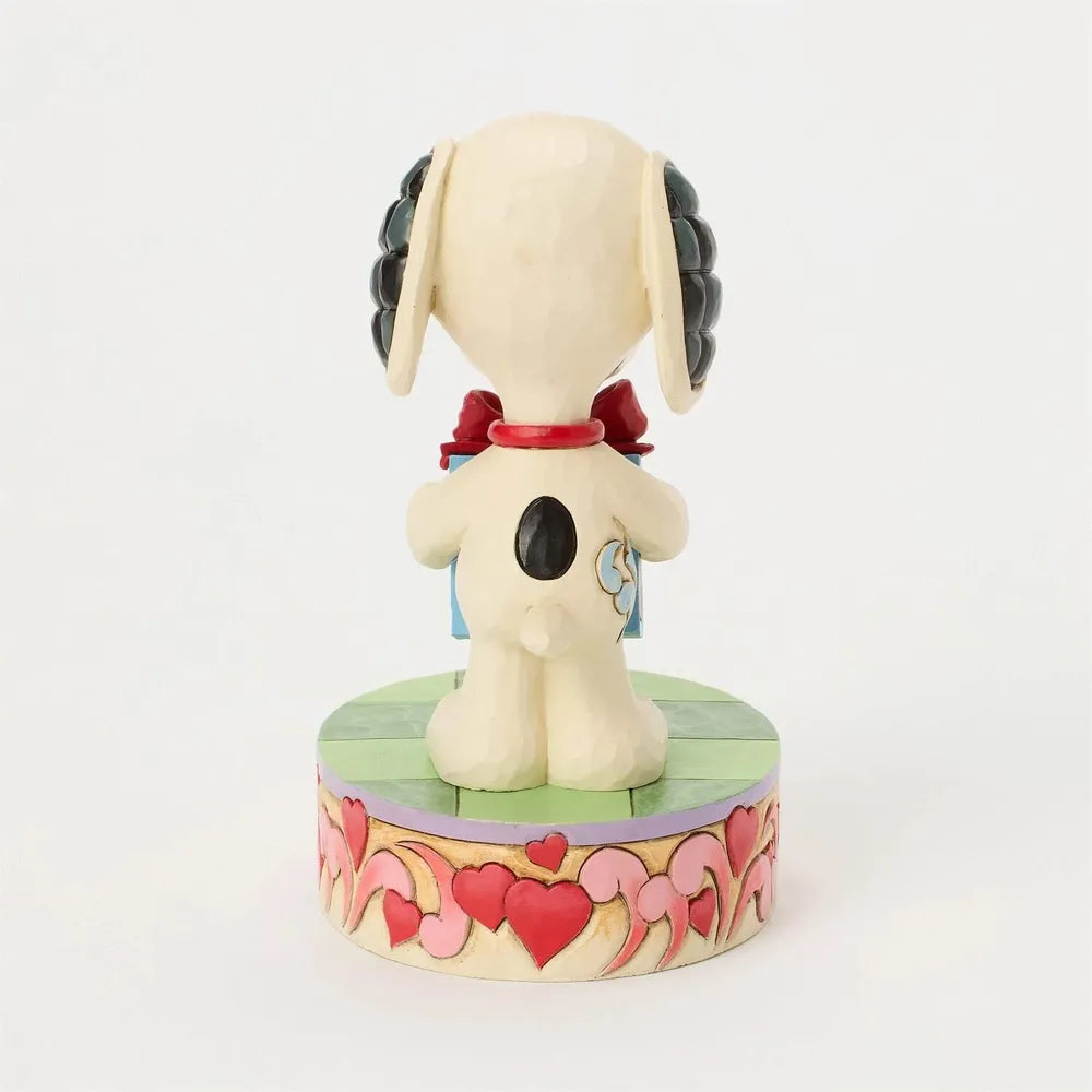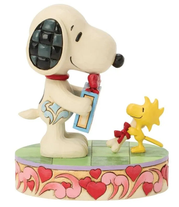 Snoopy and Woodstock share a heartfelt moment of friendship and love in this charming Jim Shore Valentine's Day design. Decorated with hearts and Jim Shore's signature folk-art details, Snoopy gifts Woodstock birdseed and gets a bone in return.