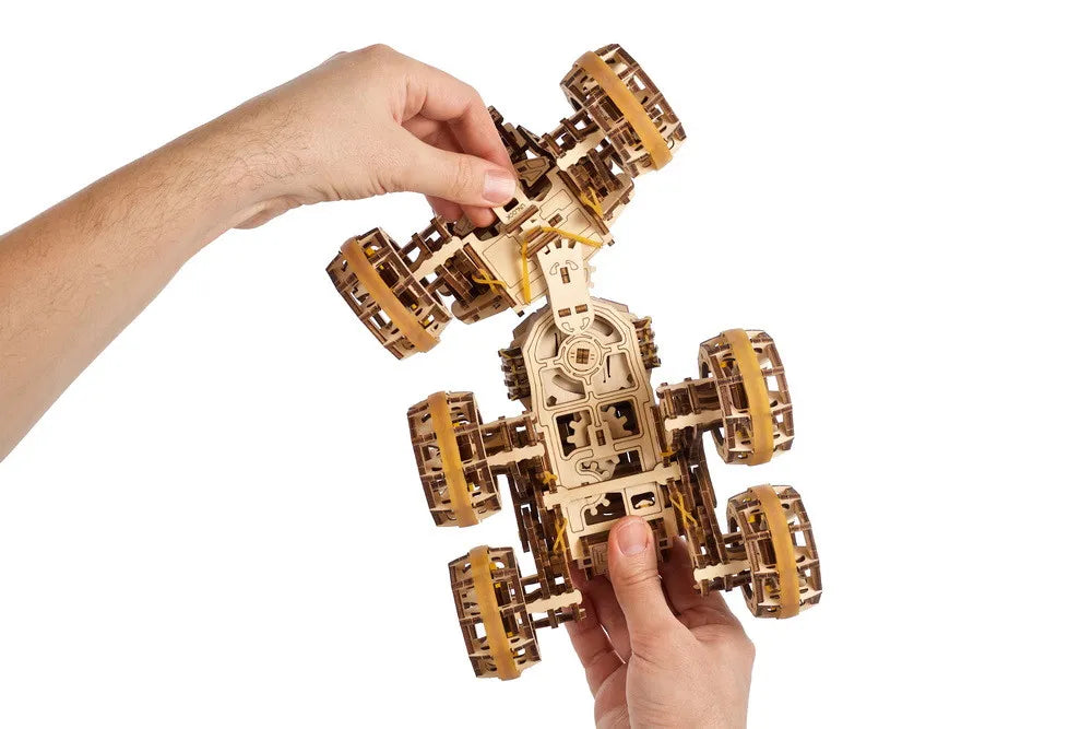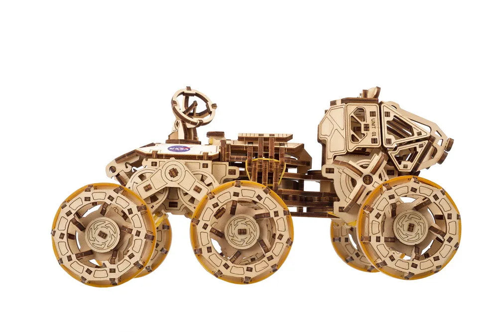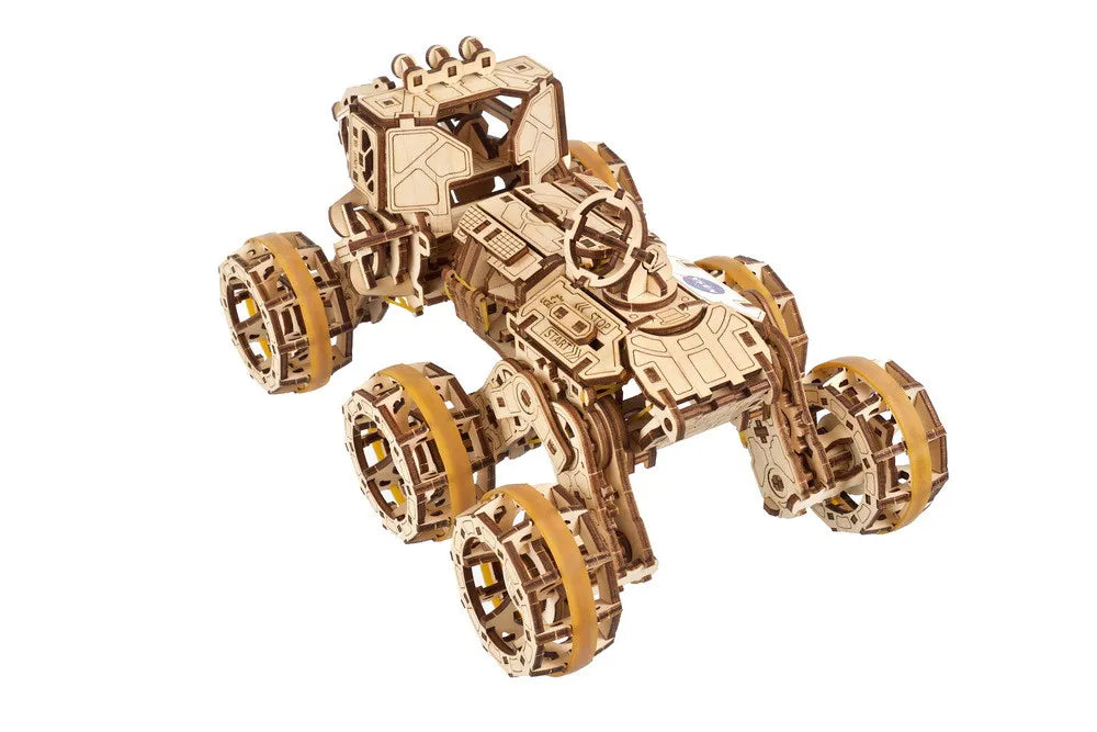 Assemble me. Explore the Red Planet with Me! Explore the red planet with Ugears Manned Mars Rover, a DIY 66 all-terrain explorer designed for planetary missions. With independent suspension, a spring-driven motor, swivel chassis, rotating antenna, and folding rear ramp, this detailed model is built for navigating Martian landscapes.