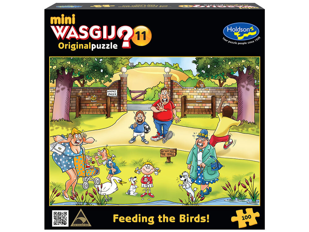 WASGIJ? PUZZLE 100PC MINI - ORIGINAL 11 - FEEDING THE BIRDS! Use your imagination as well as your curiosity to find out what's happening in this puzzle. Only the puzzle holds the answer! Approximate puzzle size 32.4 x 22.9cm. Ages: 6+