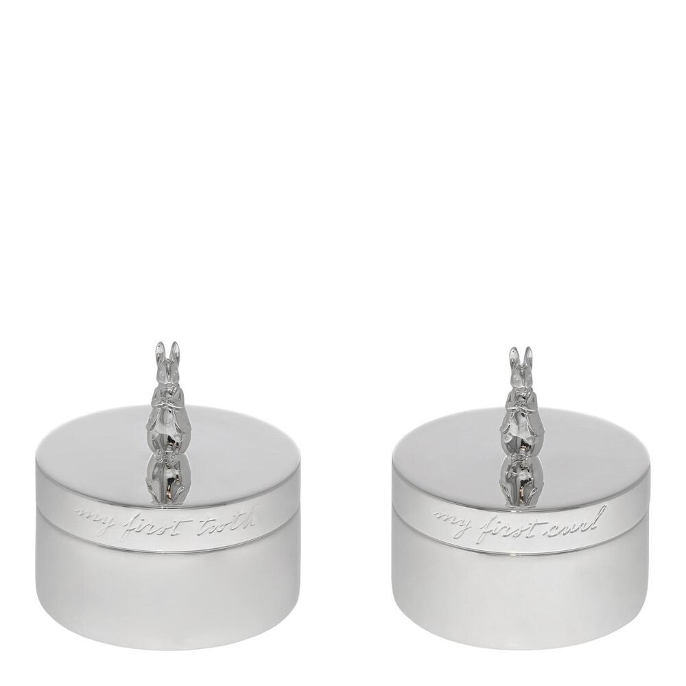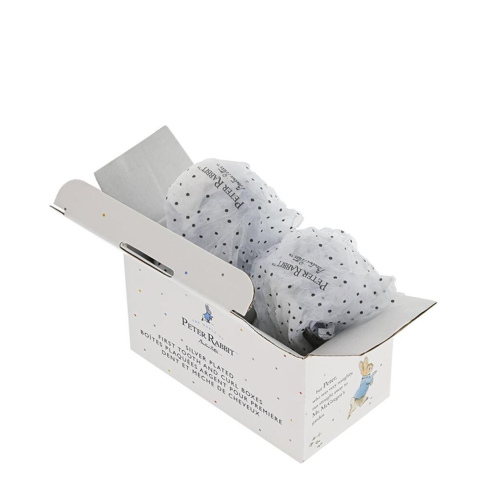 BEATRIX POTTER NEW BABY - PETER RABBIT SILVER PLATED FIRST TOOTH & CURL BOX (SET OF 2)