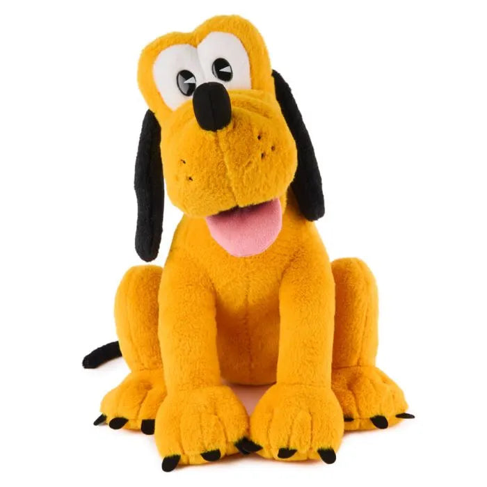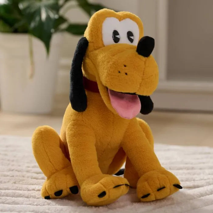 - Features Disney's Pluto in a seated pose with soft yellow plush and a red velvet collar