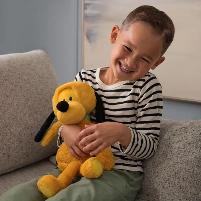 Mickey's loyal pup is a playful pal who's always ready for fun, and now he's here for a play date! Disney's Pluto, Mickey's excitable pet dog, is shown as a soft and huggable plush with authentic character details including his bright orange-yellow plush complemented by his long, floppy black ears, a pointed black nose on a happy muzzle, and a matching black tail. Pluto has been crafted with GUND Toothpick bear's signature slender frame and long, floppy limbs that dangle and make them oh-so-posable.