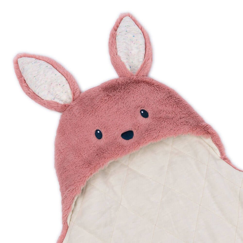 -This double-sided plush baby blanket features an inner lining of soft quilted fabric and an adorable pink bunny design