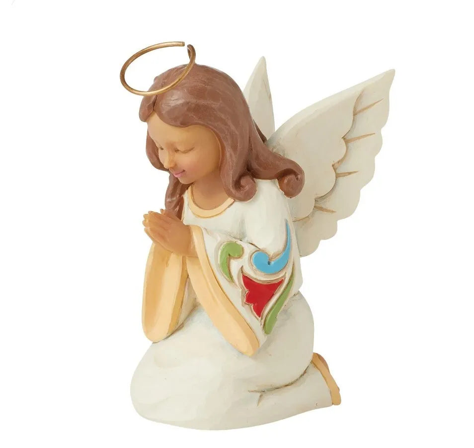 This colourful miniature features the unique artistry of Jim Shore in a size that fits in any room of the home or office. The inspirational angel reflects the power of heartfelt prayer; a meaningful reminder of faith and hope.
