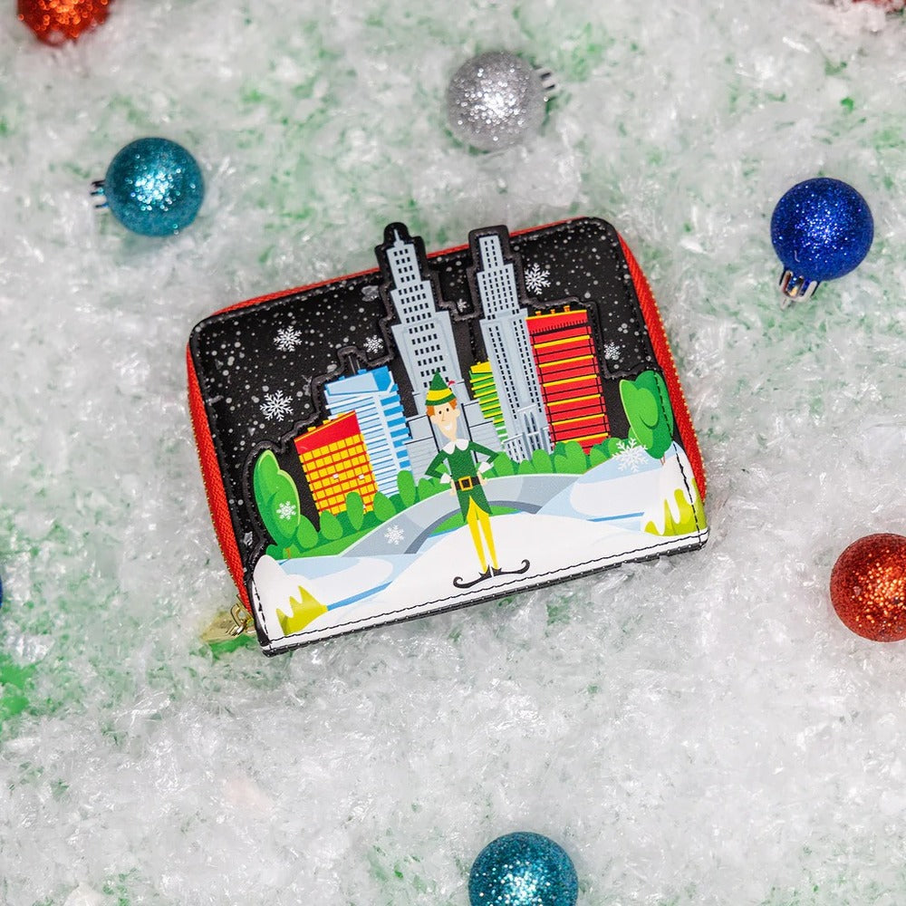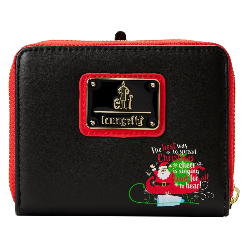 Theres no shortage of Christmas cheer when Buddy the elf is around! The Loungefly Elf Buddy in Manhattan Zip Around Wallet is bringing childlike wonder to the holiday season. On the front, Buddy stands in Central Park as skyscrapers tower into the snowy sky above. On the reverse side, Santa waves from his sleigh while Buddys famous quote appears beside him: The best way to spread Christmas cheer is singing loud for all to hear! With four slots for holding cards and a clear slot to hold your ID, this festive accessory will keep your elf essentials safe on any adventure.