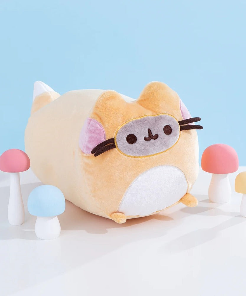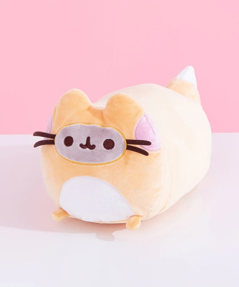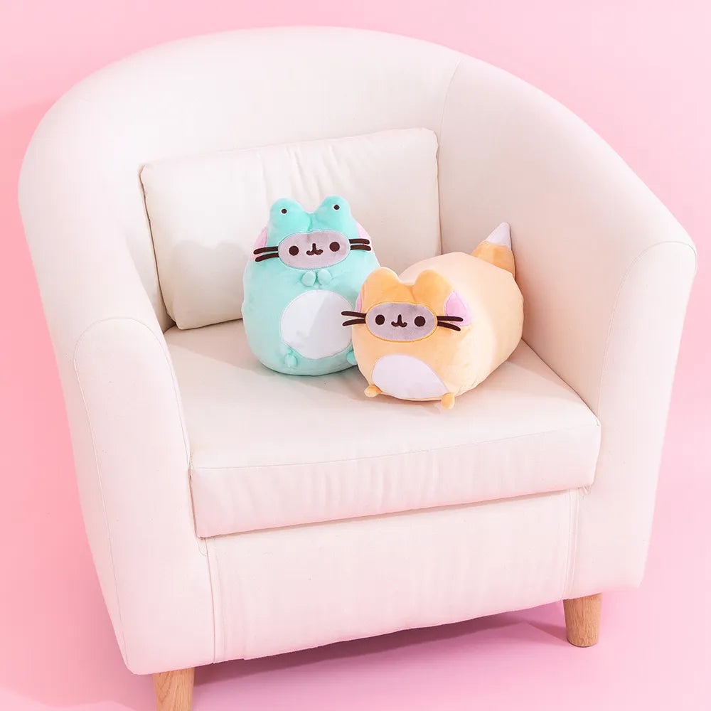 Pusheen is disguised as a fox! This soft, squeezable log-shaped plush features Pusheen outstretched in a leaping position as an enchanted fox. She features soft orange-and-white plush, pink embroidered cheeks, grey facial details, and a white patch on her tummy. She also features a fluffy, white-tipped fox tail in this enchantingly cute plush! Based on the Pusheen Enchanted Forest Mystery plush series, this adorable and unique Pusheen fox is perfect for kawaii plush collectors and any fans of the lazy, tubby tabby. Each Pusheen plush is designed with premium soft, surface-washable plush and ships in a protective poly bag.