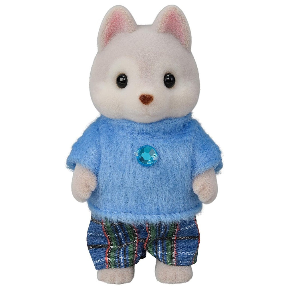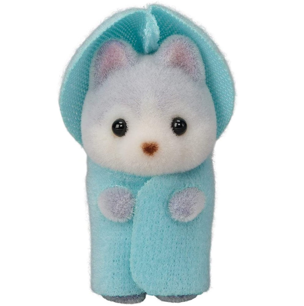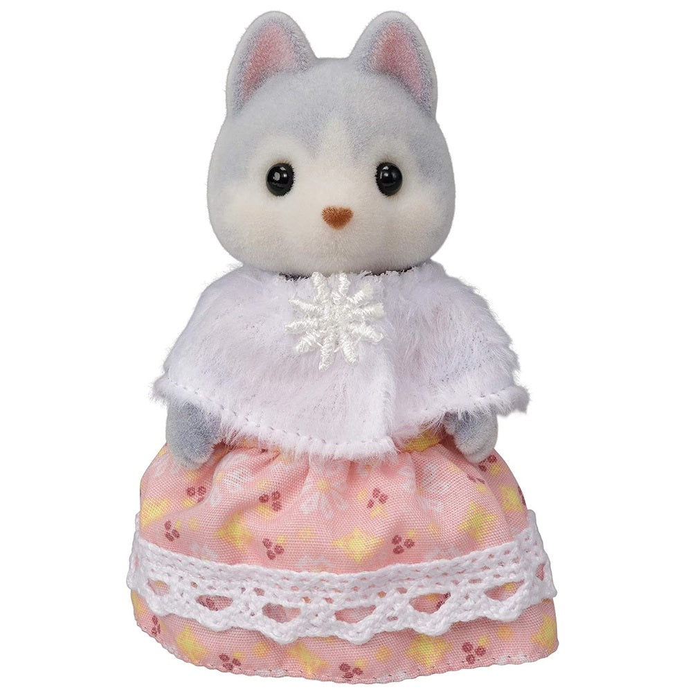 Meet the Husky Family, Father Vincent, Mother Avril, and triplets Rae, Drake, and Nelly, as well as a sleigh for the triplets. The figures have beautiful grey and brown fur and the adorable triplets are wearing matching hooded outfits. The triplets can ride in the sleigh. Dressed in removable fabric clothing, these miniature animal figures have articulated arms, legs and head and are made with a high quality fabric giving them a soft velveteen surface. Each figurine has its own story and can be complemented with a range of accessories.
