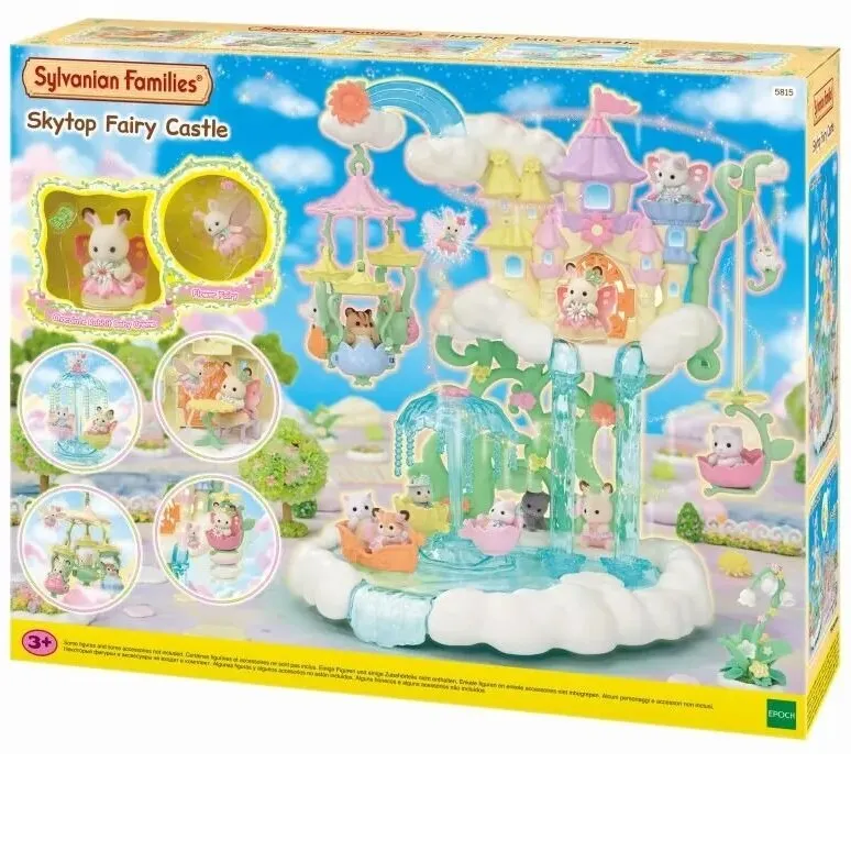This castle includes lots of fun rides, including a Fairy Castle, Flower Sky Ride and Blossom Fountain! Comes with a fairy stand to make the Flower Fairy "fly"! There's a cafe area with a table and chair in the Fairy Castle, and any child figure can sit in the Leaf Boat. The Flower Fairy and Chocolate Rabbit baby are wearing a cute earring.