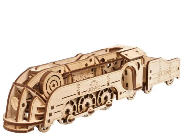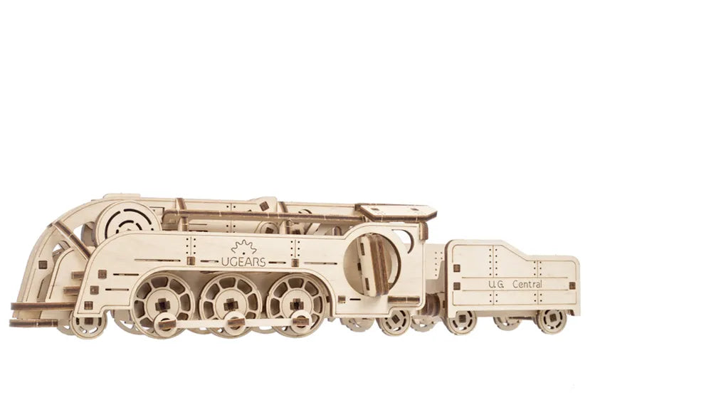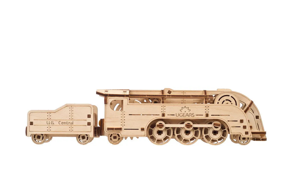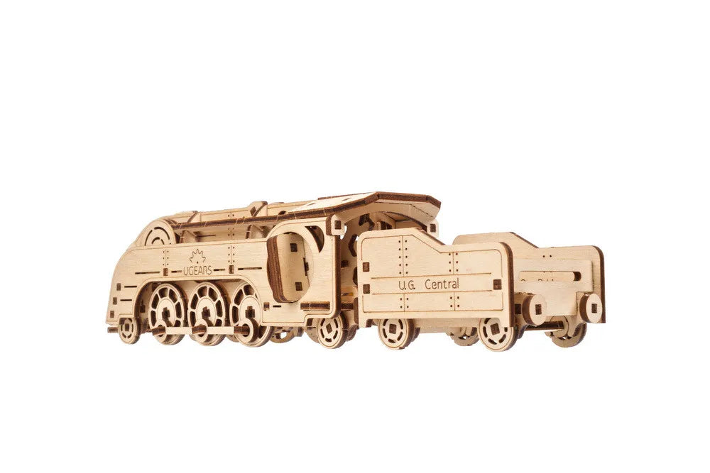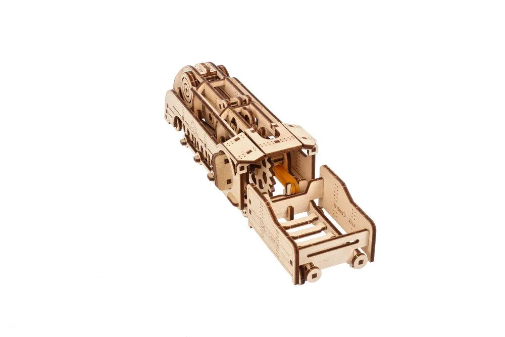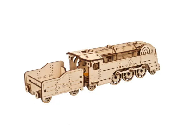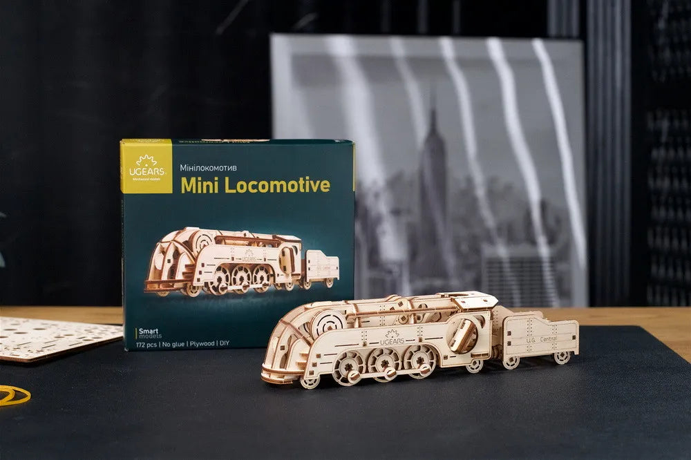 Ugears Mini Locomotive is a simple, Easy-rated model thats perfect for first-time builders, including younger train enthusiasts. This rubber band-powered wooden traincomplete with locomotive and tenderpacks a surprising amount of energy into a compact design, travelling over 2 metres on a single wind-up. Its retro styling evokes the 1930s, capturing the charm of steam locomotives from a bygone era.